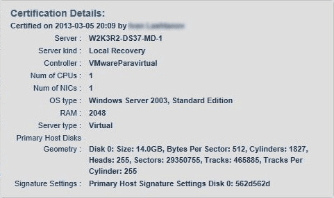 in the Role accessible operations area for a primary server. This is available only to the "admin" user access role. - Open a tooltip showing the certification details by holding the mouse pointer over the Certification icon.
