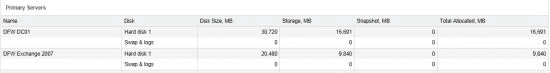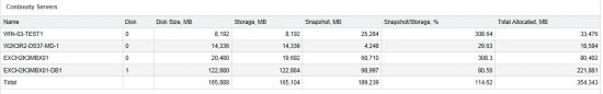 - A table of data about continuity servers: allocated and used space for each server.