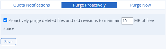 You can set a minimum amount of free cloud storage space that should be kept free. If this threshold is reached, Sync & Share will automatically purge your deleted files and older revisions of your files.