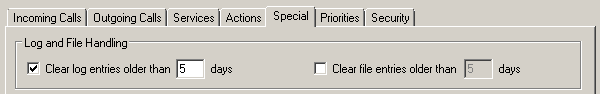- From the Log and File Handling section, select the Clear Log Entries Older Than __ Days checkbox and type an age in days.