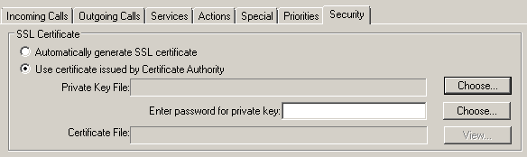To use a certificate issued by a Root Certificate Authority, check the Use certificate issued by Certificate Authority check box in the SSL Certificate section.