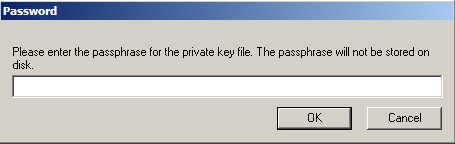 In the Password window that appears, enter the password for the private key and click OK in order to load the file in MassTransit.