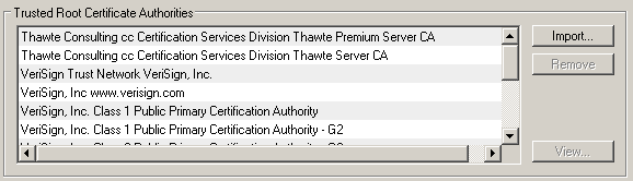 In the Trusted Root Certificate Authorities section, click on the Import... button.