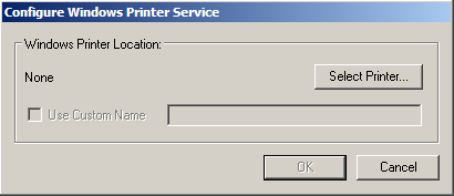 After selecting the desired printer, click OK and its name will be displayed in the Windows Printer Location area of the Configure Windows Printer Service window.
