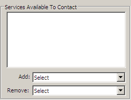 In the Services Available To Contact Privileges section, designate the desired services by selecting them from the Add drop-down menu.