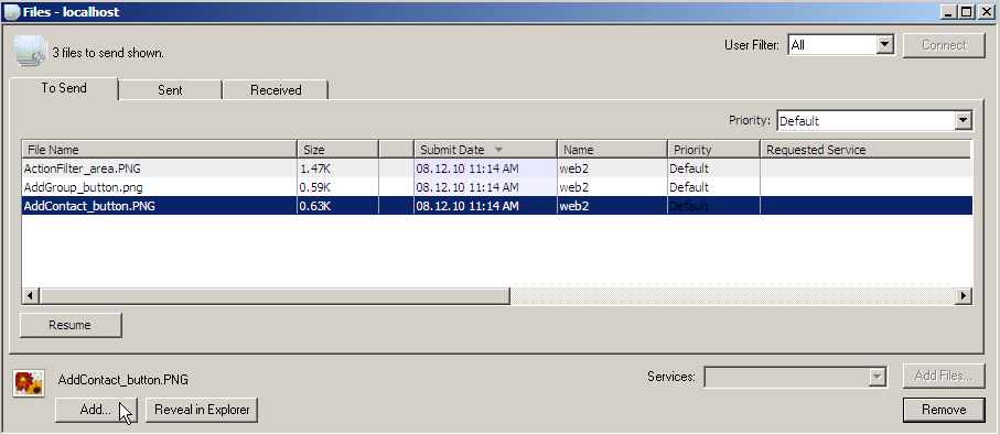 In the Files window of the MassTransit Administrator, open the To Send tab.