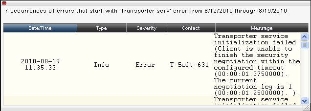 If you click on the circle graph, a list will appear with detailed information about the error occurrences (to close the list, click the red x in the top left corner):