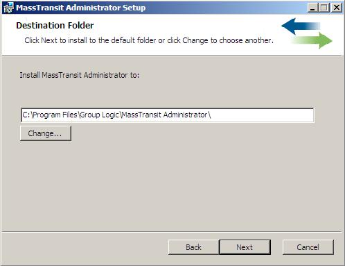 The MassTransit Administrator Setup begins. Click Next to continue.