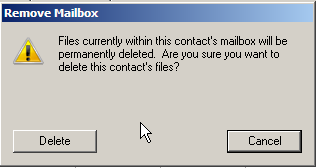 - Clicking on the Delete button will remove the contact from the list and his mailbox will be erased.