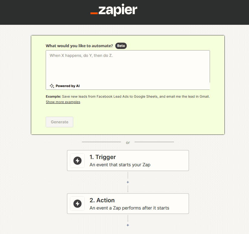 Most Zap templates consist only of two steps: a trigger to wait for data from an app and an action to do something with this data. However, advanced workflows may require some more steps like search, filtering or additonal automations.