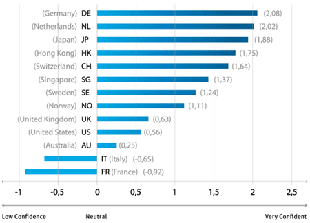 Con puntuaciones negativas, los países del sur de Europa están muy por debajo de sus colegas europeos de Alemania, Holanda y Suiza