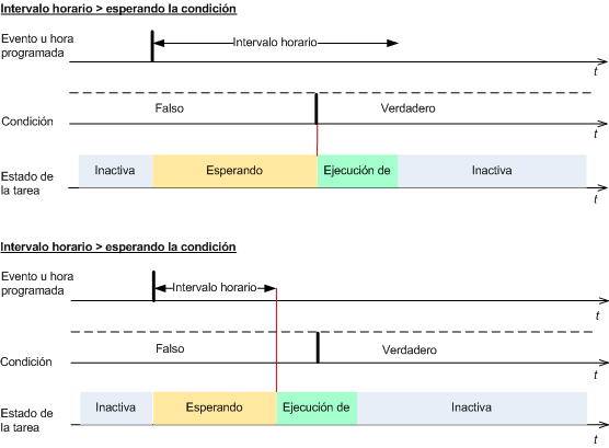 Con esta configuración, el Programado comienza a supervisar las condiciones e inicia la tarea cuando se cumplen las condiciones. Si no se cumplen las condiciones, la tarea no comenzará nunca.