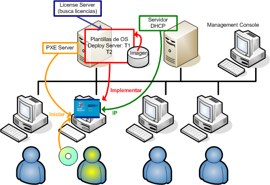 Importante: Si la implementación iniciada por el usuario utiliza un servidor PXE, los equipos que se implementen a través de tareas de implementación no podrán iniciar desde ese servidor PXE. Sin embargo, las implementaciones en aquellos equipos serán posibles si se inician desde un dispositivo de arranque.