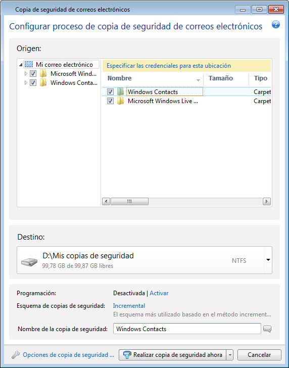 Vamos a analizar cómo utilizar este tipo de copia de seguridad para realizar la copia de seguridad de una carpeta.