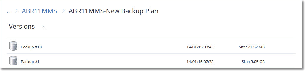 [Cuando explore copias de seguridad a nivel de discos] En Versiones, haga clic en la copia de seguridad de la que desea recuperar los archivos.