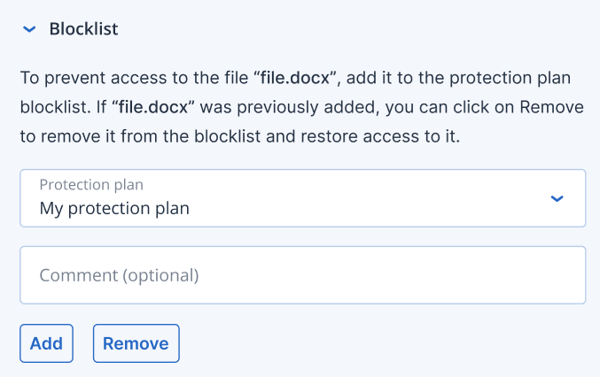 Añade o elimina un proceso, archivo o red en la lista de bloqueados o permitidos del plan de protección