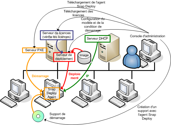 Cette séction illustre la fonctionnalité des composants d'Acronis avec l'exemple du déploiement que vous démarrez manuellement. Pour des détails sur la forme de déploiement, voir « Déployer une image maître ».