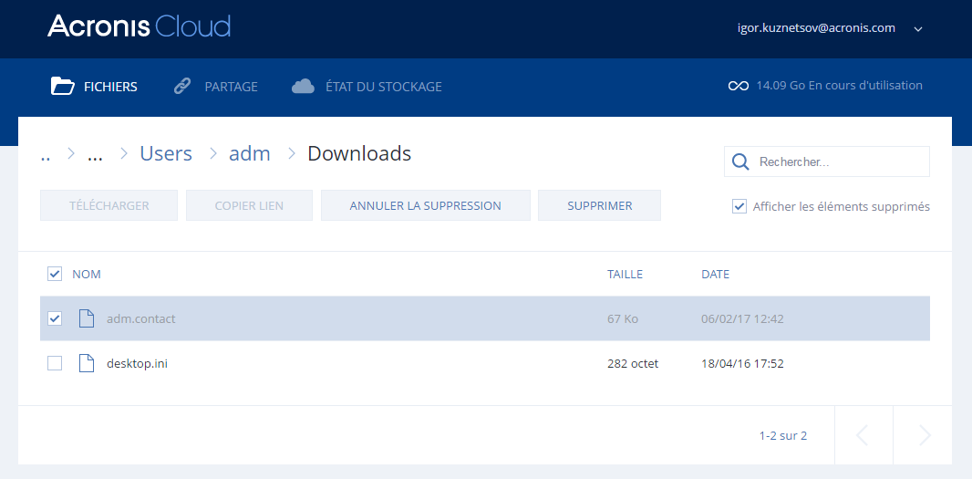 Vous pouvez parfois supprimer un fichier d'une sync par mégarde. Il vous faut alors restaurer le fichier supprimé. Ceci est possible pour les syncs conservant des versions du fichier sur Acronis Cloud.
