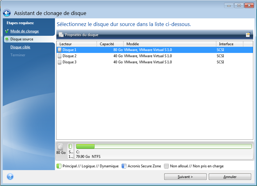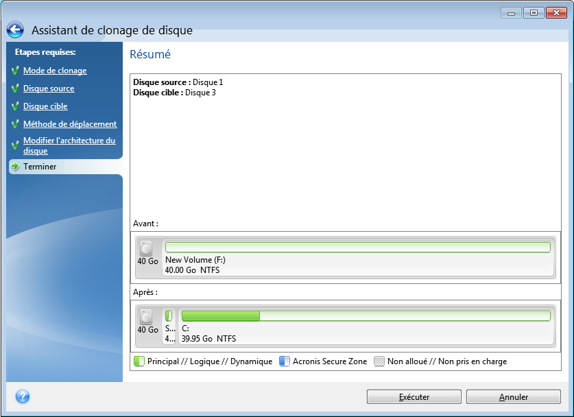Si un disque est non partitionné, le programme le reconnaît automatiquement comme disque de destination et ignore cette étape.