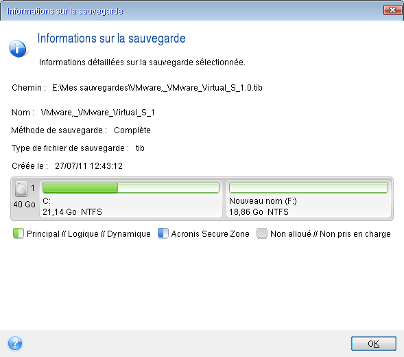 Dans le cas d'une partition cachée (par exemple, la partition réservée au système ou une partition créée par le fabricant du PC), cliquez sur Détails dans la barre d'outils de l'assistant. Prenez note de l'emplacement et de la taille de la partition cachée, car ces paramètres doivent être identiques sur le nouveau disque.
