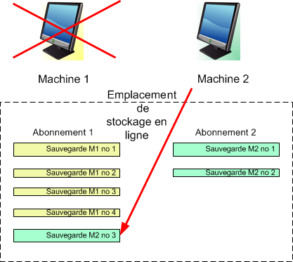 Supprimez les sauvegardes d'Abonnement 1 en utilisant Machine 2. Vous ne pouvez pas supprimer les sauvegardes d'Abonnement 2, à moins d'affecter cet abonnement à une machine.