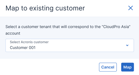 When complete, the Mapping column displays Mapped, and the Acronis customer column displays the relevant customer name.