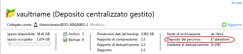 Se viene visualizzato un percorso locale, quest'ultimo si trova sulla macchina con il nodo di archiviazione.