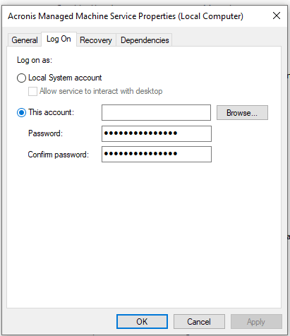 Vedere anche Utilizzo degli account gMSA con l'agente Cyber Protection.