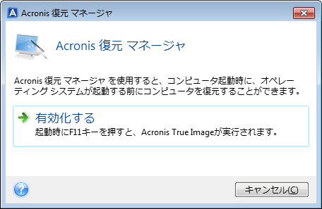 Acronis スタートアップ リカバリ マネージャをアクティブ化するには