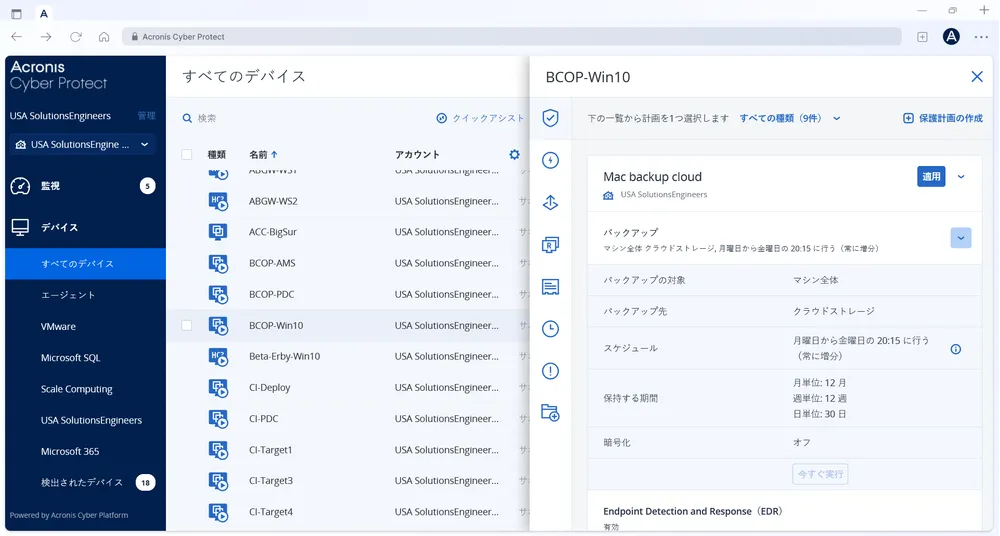 Acronis Cyber Protect Localは、強固なバックアップ、高速リカバリ、サイバーセキュリティ、エンドポイント管理を単一のプラットフォームで提供し、IT および OT の運用において俊敏性・レジリエンス・コンプライアンスを実現するとともに、コスト削減や運用の簡素化を可能にします。