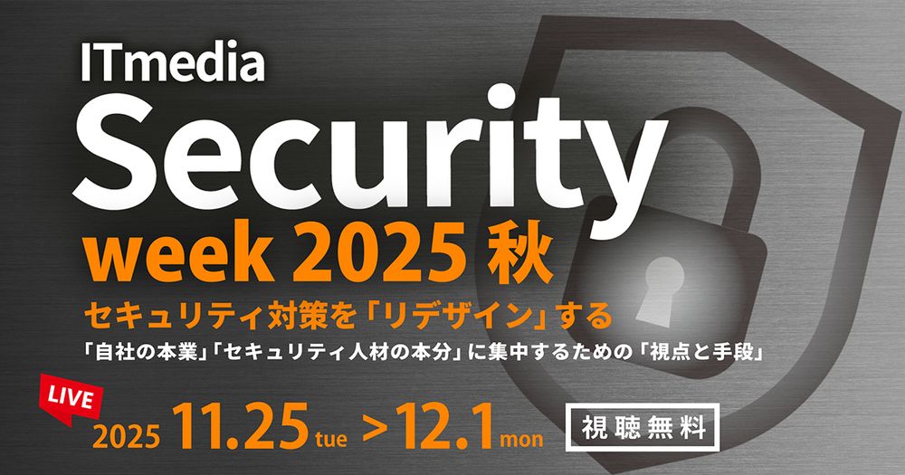 - イベント名称:ITmedia Security Week 2025 秋 セキュリティ対策を「リデザイン」する~「自社の本業」「セキュリティ人材の本分」に集中するための「視点と手段」~