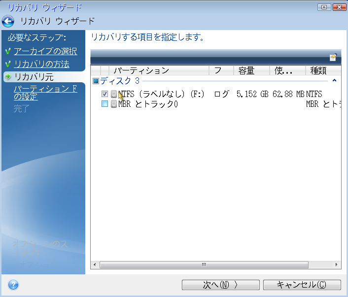 - [復元の方法] ステップで [ディスクまたはパーティション全体を復元する] を選択します。