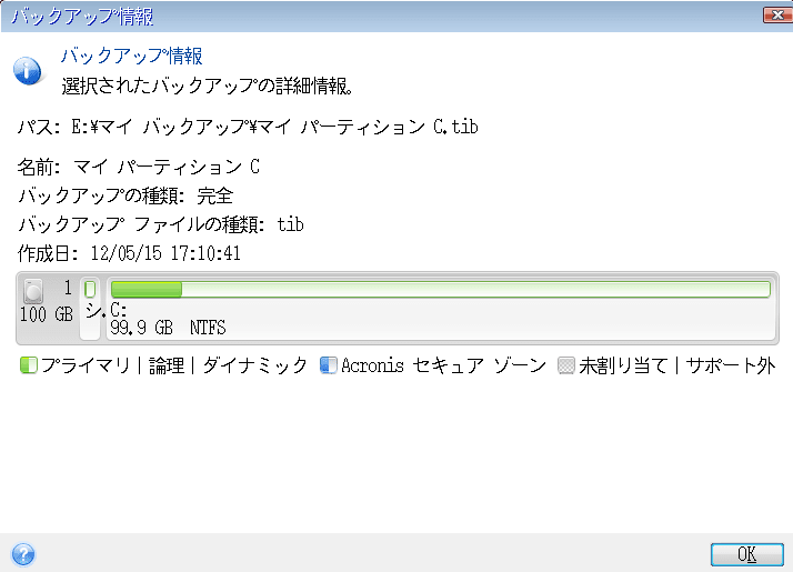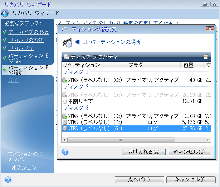 [リカバリ元] の手順で、リカバリするパーティションのチェックボックスをオンにします。