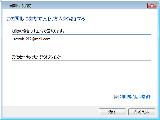 3 台以上のコンピュータ間で同期を作成する場合は、次の同僚を同期に招待します。同僚の電子メール アドレスを入力します。コンピュータの所有者は招待したユーザーに対して上記の手順を実行する必要があります。他のすべてのユーザーについて同様の手順を実行します。