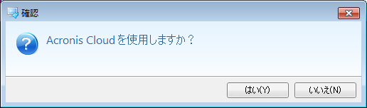 - データのバージョンを Acronis Cloud に保存する場合は、[確認] ウィンドウで [はい] をクリックし、保存しない場合は、[いいえ] をクリックします。