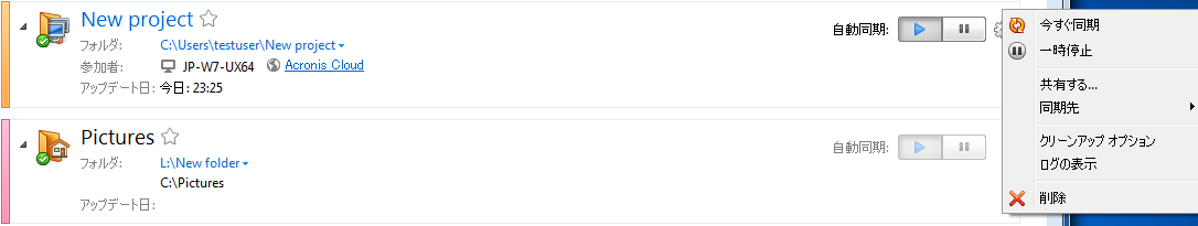 異なる Acronis アカウントに属するコンピュータ間でデータを同期することができます。たとえば、同じプロジェクトで作業している同僚と同期するとします。