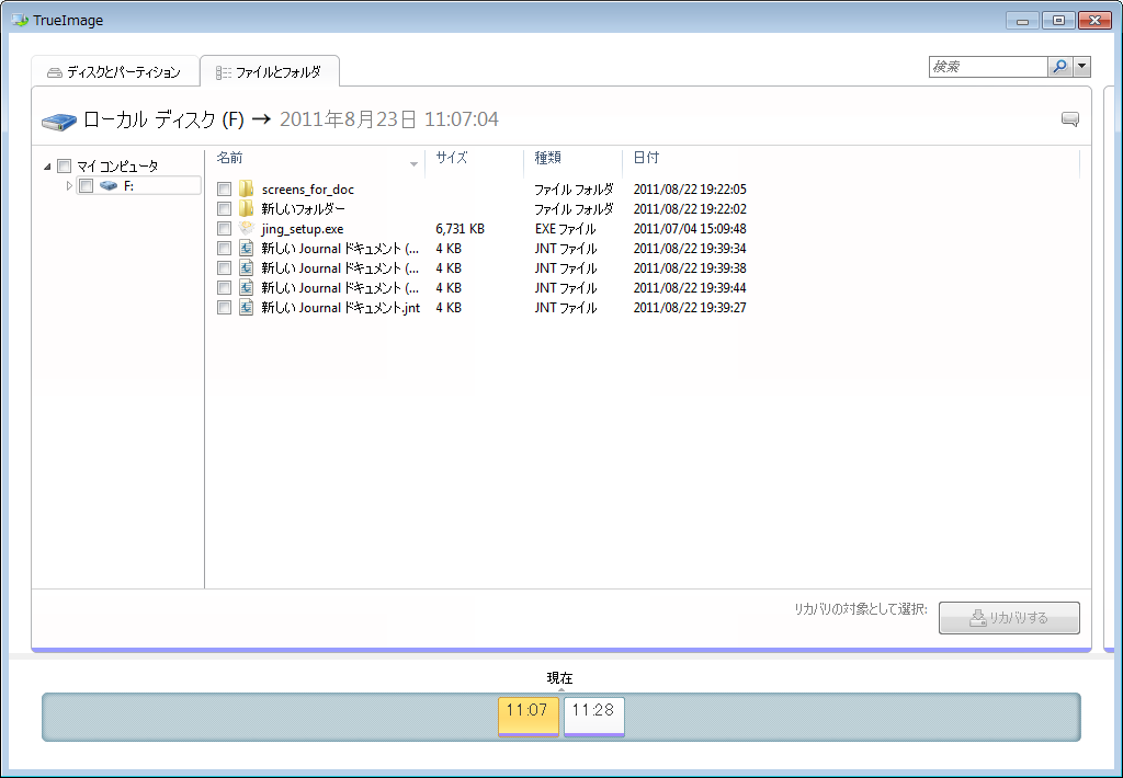 ファイルやフォルダをリカバリする手順は、次のとおりです。
