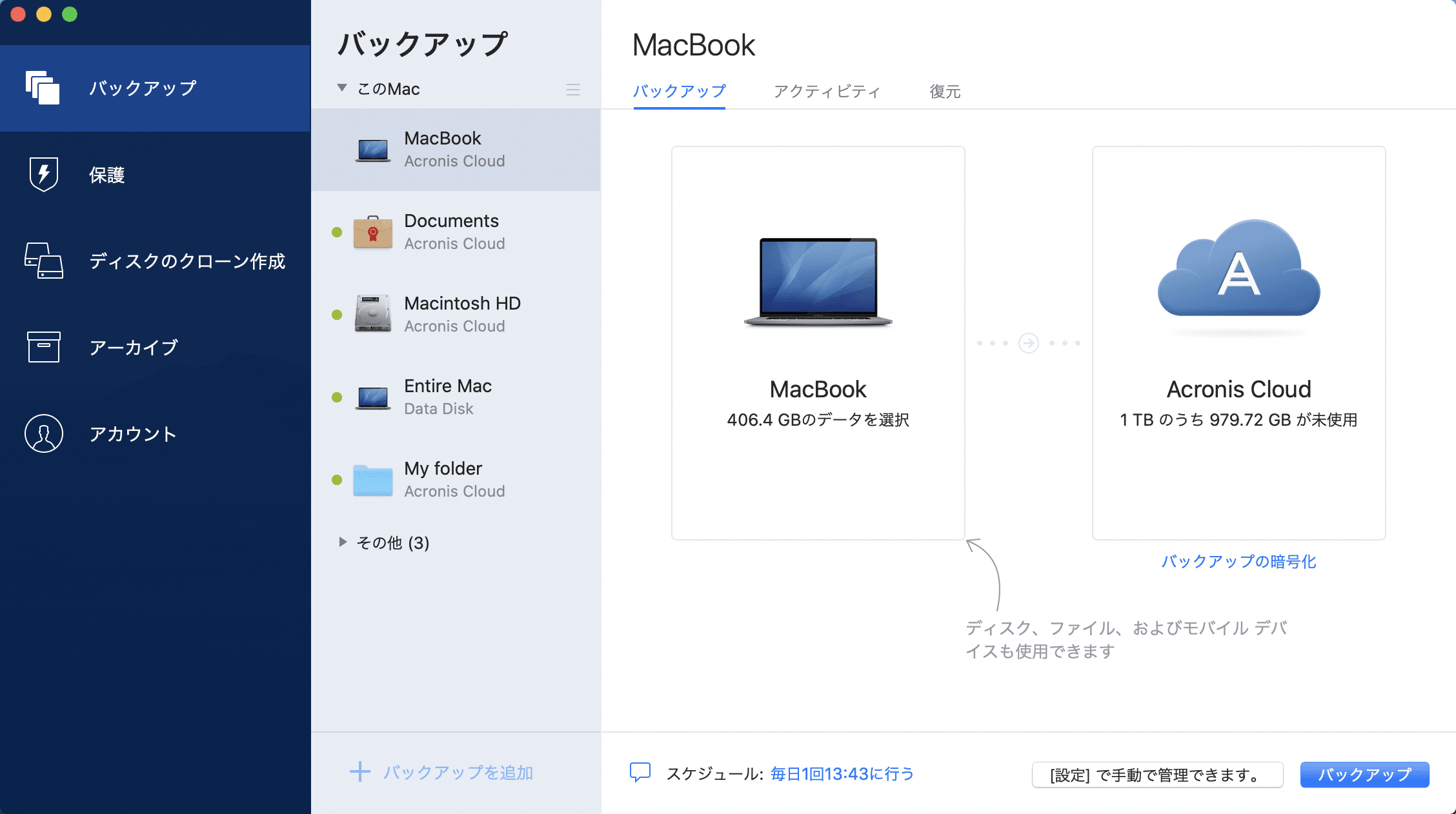 Acronis Cloud へのバックアップ