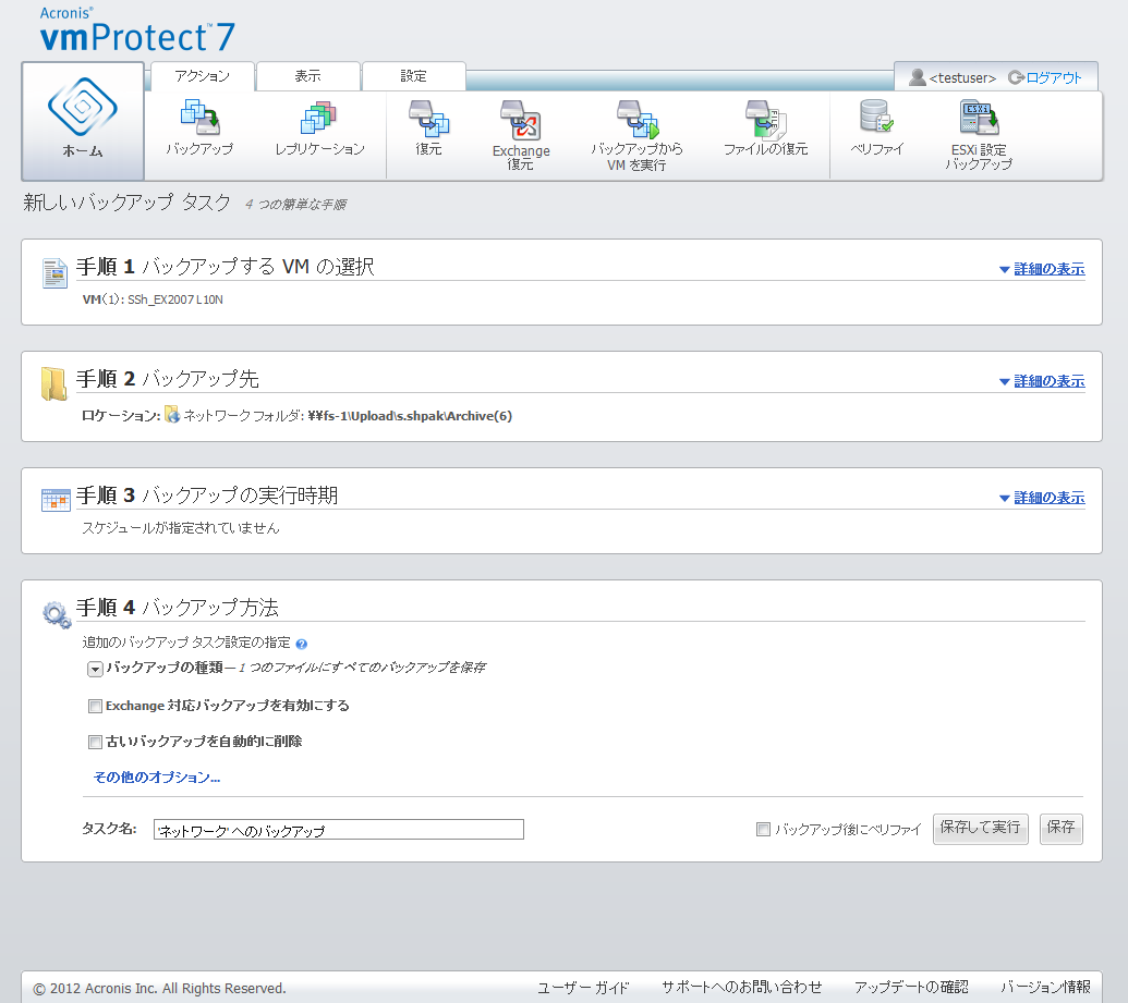 バックアップ作成ウィザード、手順 4: バックアップ方法