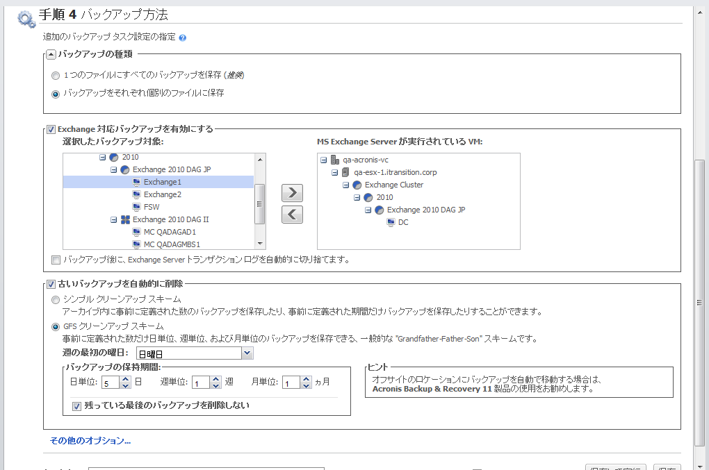 バックアップ作成ウィザード、手順 4: バックアップ方法、[GFS クリーンアップ] スキーム