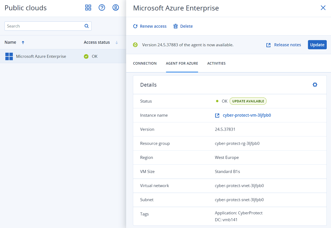Azureエージェントの配置を表示およびアップデートできます。その方法は次のとおりです。