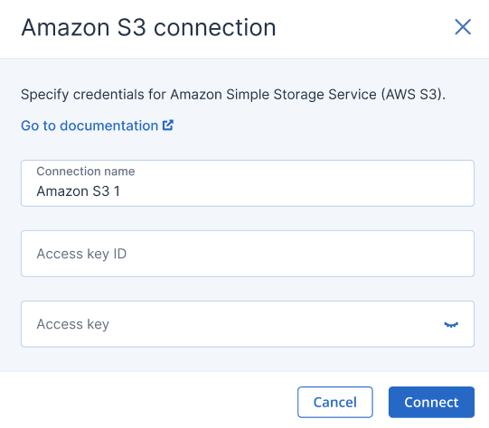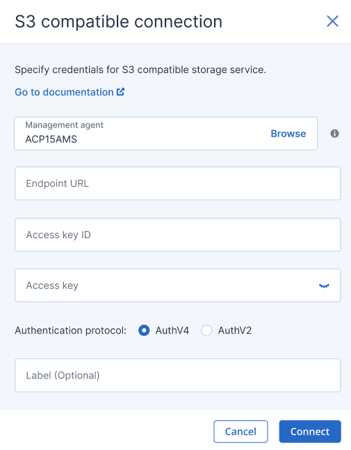 プライベートホスト型(インターネットを介してアクセスできない)およびパブリックホスト型のS3互換ストレージサービスの両方がサポートされています。表示されたダイアログで次の項目を定義します。