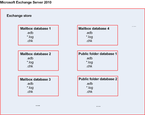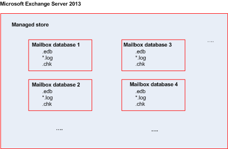 Microsoft Exchange Server stores its data in a single repository called information store (in Exchange 2003/2007), Exchange store (in Exchange 2010), or Managed store (in Exchange 2013). The primary components of the information store are storage groups (for Exchange 2003/2007 only) and Exchange databases.