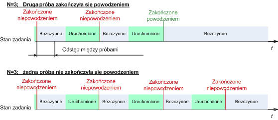Ustawieniem wstępnym jest brak ponownego uruchamiania zadania zakończonego niepowodzeniem.