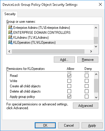 Note: If you use a custom MSI package with defined DeviceLock Service settings to deploy DeviceLock Service using Group Policy, these settings are not applied to client computers if any one of the following conditions is true: •The default security is disabled on remotely running DeviceLock Services. •The GPO applied to client computers has the Override Local Policy setting enabled. For information about how to create a custom MSI package, see