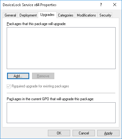 Note: Normally, when upgrading DeviceLock Service, the new MSI package detects the package to update in the GPO so the actions in Step 7 and Step 8 are performed automatically. |
