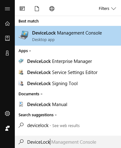 You can open the console by running the DeviceLock Management Console app from the Windows start page.