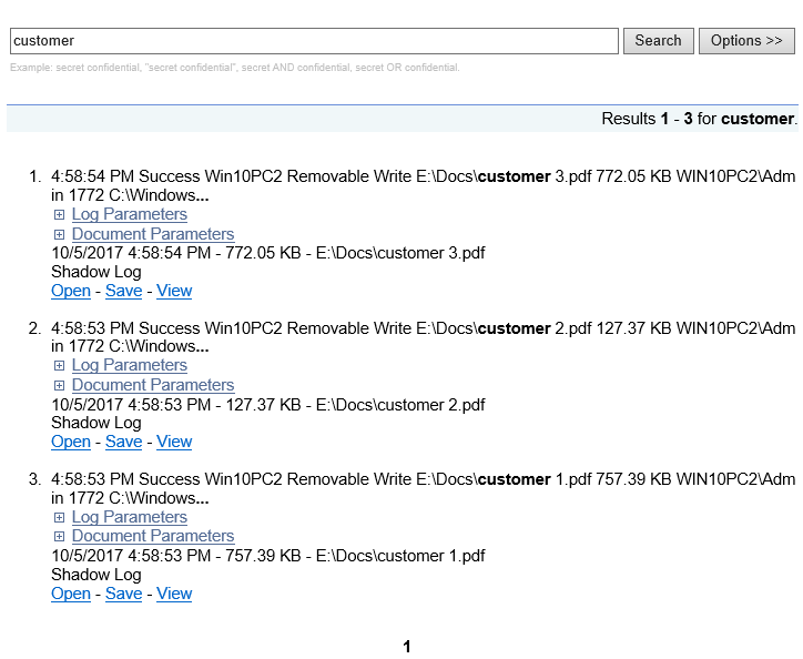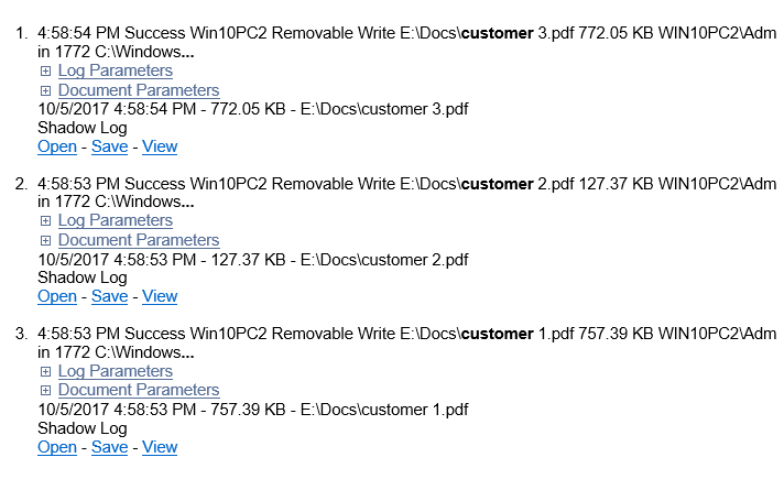 View - On search results from the shadow logs, these links allow you to open, view, and save shadow copies. For details, see