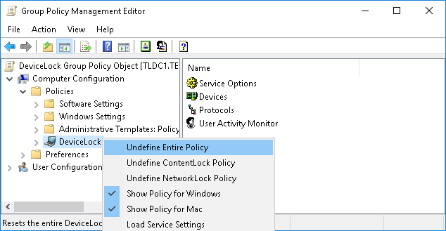 Note: In order to manage DeviceLock Service settings via Group Policy, DeviceLock Service must be installed and started on all the computers belonging to the GPO. For more information about the service installation, see