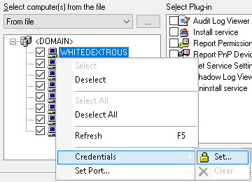 If you need to supply alternative credentials for the target computer(s), select the computer or network domain from the tree and point to Credentials on the shortcut menu.